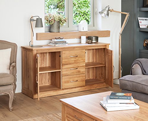 Superbe contemporain grand buffet chêne<br/>Deux grands placards avec étagères réglables<br/>Les dimensions totales du buffet sont h75 x 73.<br/>Les dimensions intérieures de chaque armoire sont : H61 x w42.5 (ouverture) x W46 (à l’intérieur) x d42 cm<br/>La tablette du haut est., et l’étagère du bas est h31.5 cm<br/>Le plateau est amovible si une armoire pleine hauteur est nécessaire<br/>Trois tiroirs spacieux<br/>Les dimensions intérieures des tiroirs sont : h16.5 x w38 x x d37 cm<br/>Fabriqué à partir de la plus haute qualité, sélectionnés en chêne massif<br/>Respectueux de l’environnement – Notre chêne est durable et issu de plantations gérées<br/>Construction de qualité exceptionnelle construit par des artisans<br/>Dos en bois et tiroir massif<br/>Sans placage chêne massif – Construit à partir de tout au long<br/>Panneaux côtés ajouter détail du motif<br/>Magnifiquement construit rainure et languette à l’arrière<br/>coïncidé tiroir articulations<br/>Poignées élégantes en acier brossé bicolore<br/>Finition laquée résistante satin est très résistante mais met en valeur le beau grain du bois<br/>Il s’agit d’une construction robuste la pièce de mobilier et pas de montage est nécessaire<br/>Heavy Duty emballage<br/>Une partie de notre gamme de meubles Baumhaus Baumhaus chêne contemporain de salle à manger