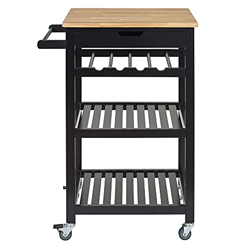 Home Deco Factory HD7102 Desserte à roulettes, Rangement Nomade Cuisine Salle à Manger, Noir-Bois, 40×62,5×85,5 cm